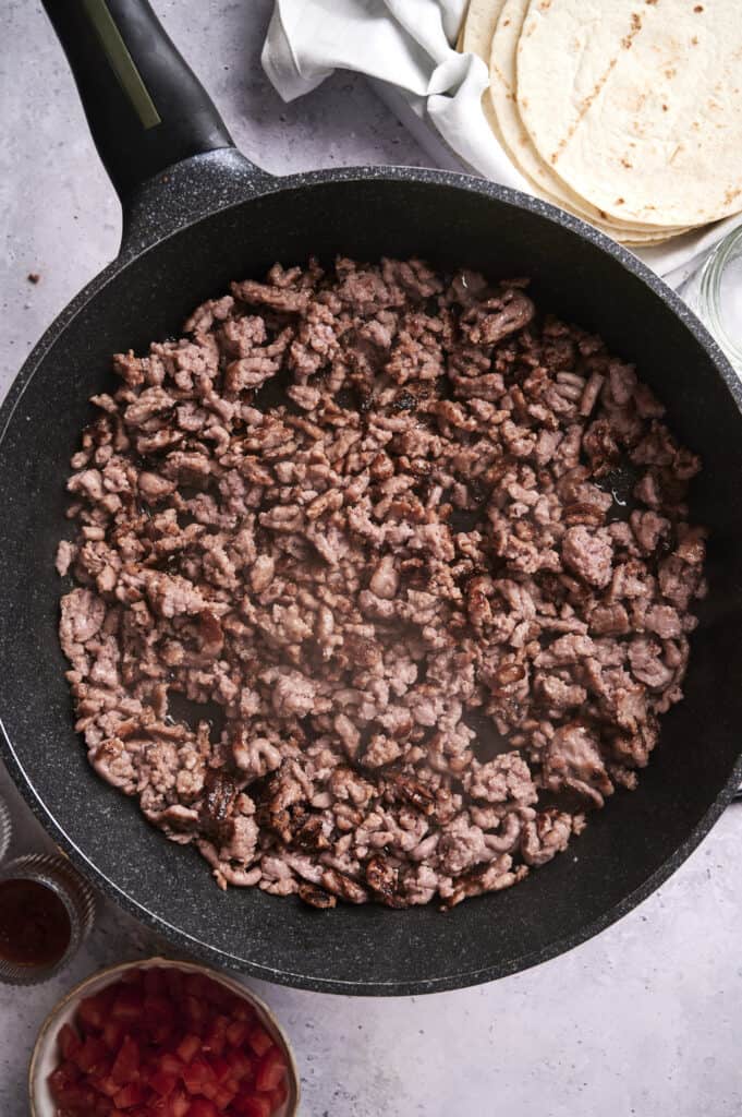 Cook until it’s browned and no longer pink, about 5-7 minutes. Don’t forget to drain any excess fat for a healthier result.