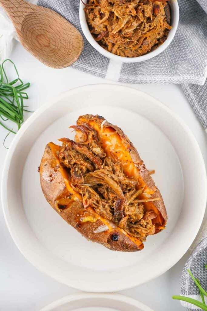 - Make Ahead: You can bake the potatoes ahead of time and store them in the refrigerator. When you’re ready to serve, add the pulled pork and other toppings, then reheat everything in the oven.