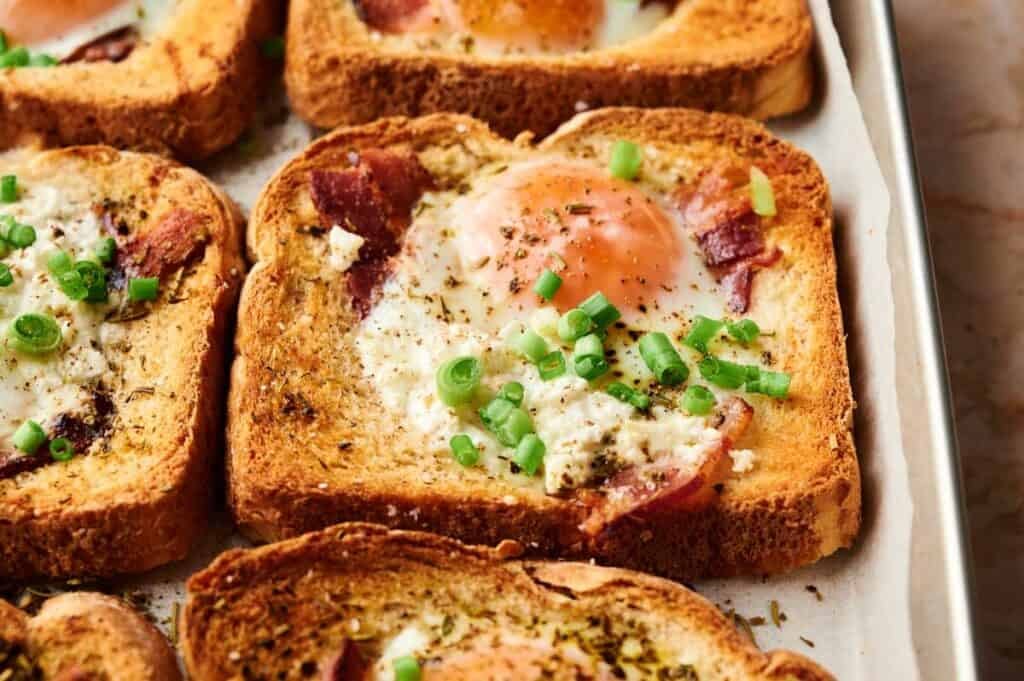 Sheet Pan Eggs have become my favorite way to enjoy a cozy, homemade meal without any fuss. The egg bakes beautifully on top of the bacon, right in the center of buttery toast, giving you the right balance between soft and crisp in every bite. With a simple prep before baking, they come together perfectly straight from the oven.